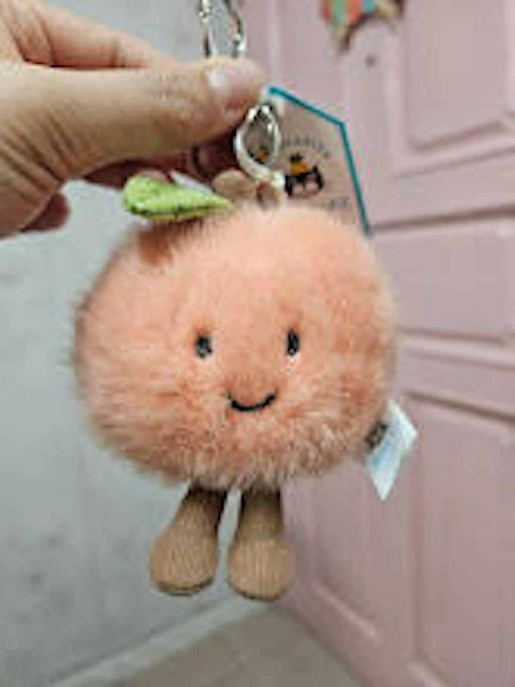熱賣 Jellycat 小蜜桃鎖匙扣用最無害的眼神與最柔軟的材質陪伴孩子的成長過程。每隻 JELLYCAT 絨毛動物均經過完善的訓練與測試,高品質車縫線搭配不掉色、不掉毛超柔軟短絨毛,提供品質與安全均有保障的玩樂時光。